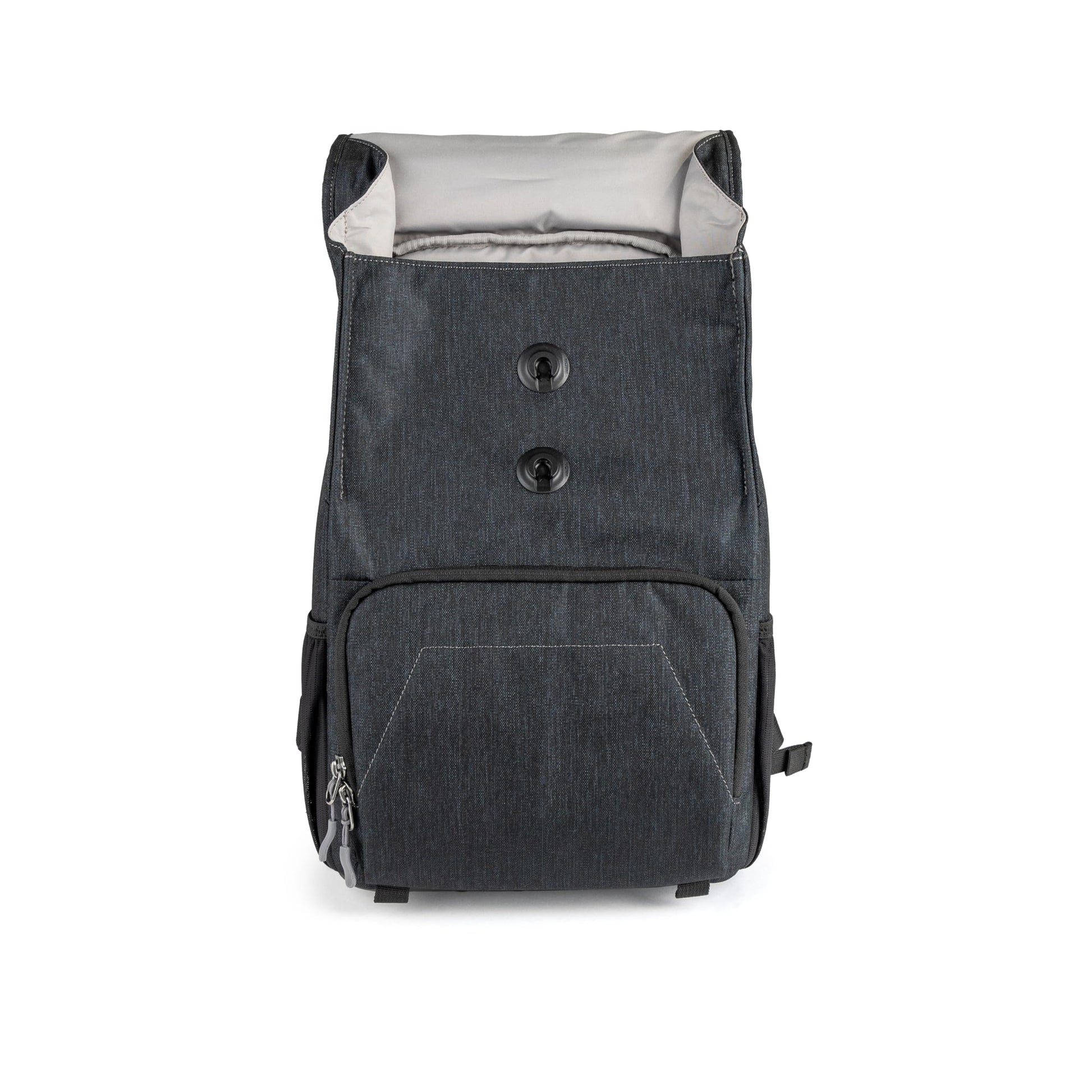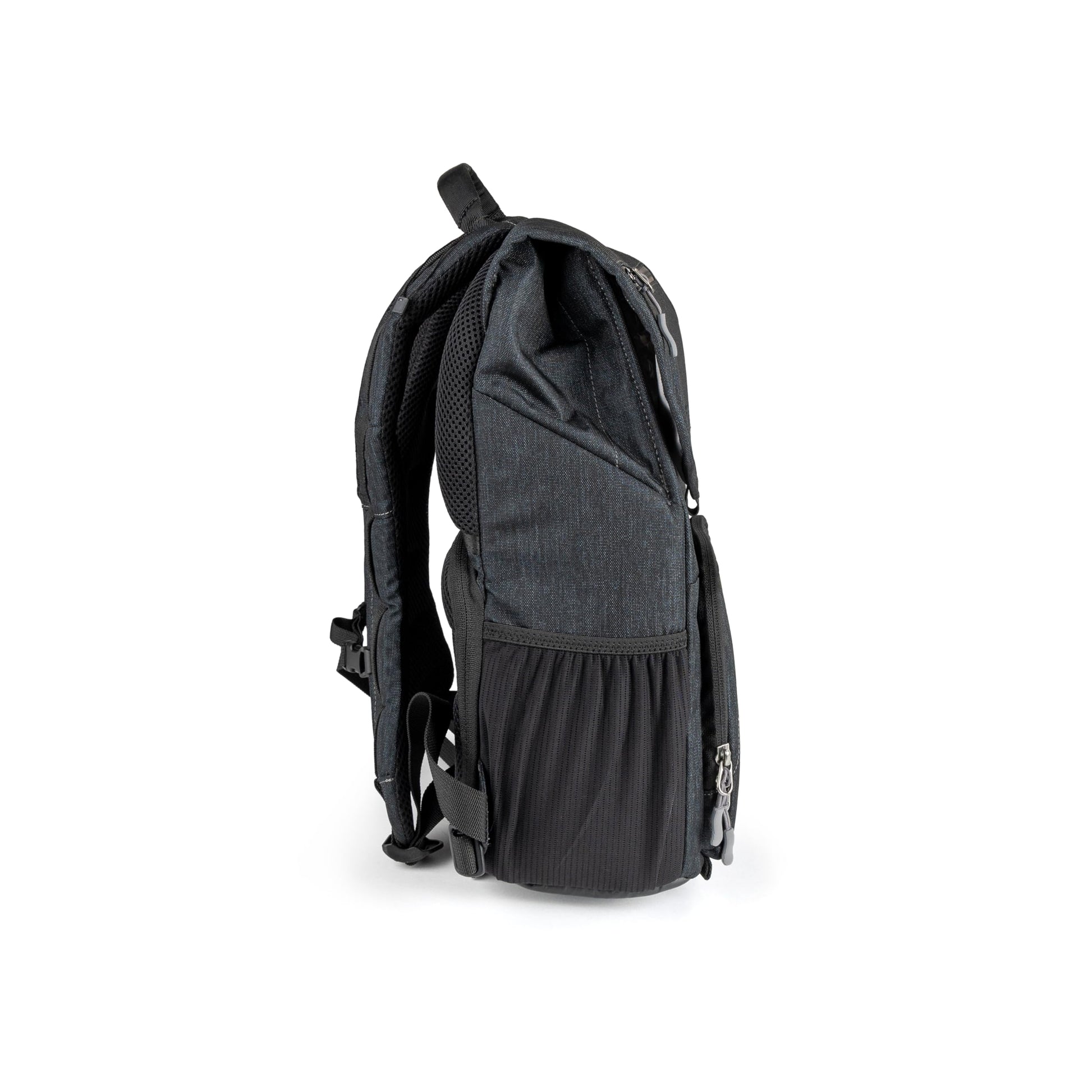 The Promaster Blue Ridge 2.0 Medium Daypack is a daypack-style backpack with a 5.3L camera compartment which can hold a camera with multiple lenses, a small light, and numerous accessories. It also incorporates an upper storage daybag compartment that adds five additional liters of storage for an overall capacity of 10.3L of versatile space. The main camera compartment access is located on the back of the bag rather than the front to keep its contents protected when wearing the daypack. This compartment has movable padded dividers and is highly customizable for a variety of imaging gear. The upper compartment provides an additional storage space to hold whatever you need for a day's activities. Fill it with a rain jacket, lunch, or even more photography gear. Access the vertical laptop compartment from inside this top cavity. The ergonomic shoulder harness system is designed for all-day comfort. It is extremely well padded and uses an S-curve design to fit many body types. A sternum strap keeps the shoulder straps in place and the removable waist strap can also be attached to keep the bag tight against your back for added comfort. The 600D polyester outer fabric is fully treated for weather resistance, and a full rain cover is included for when there's an unavoidable deluge.