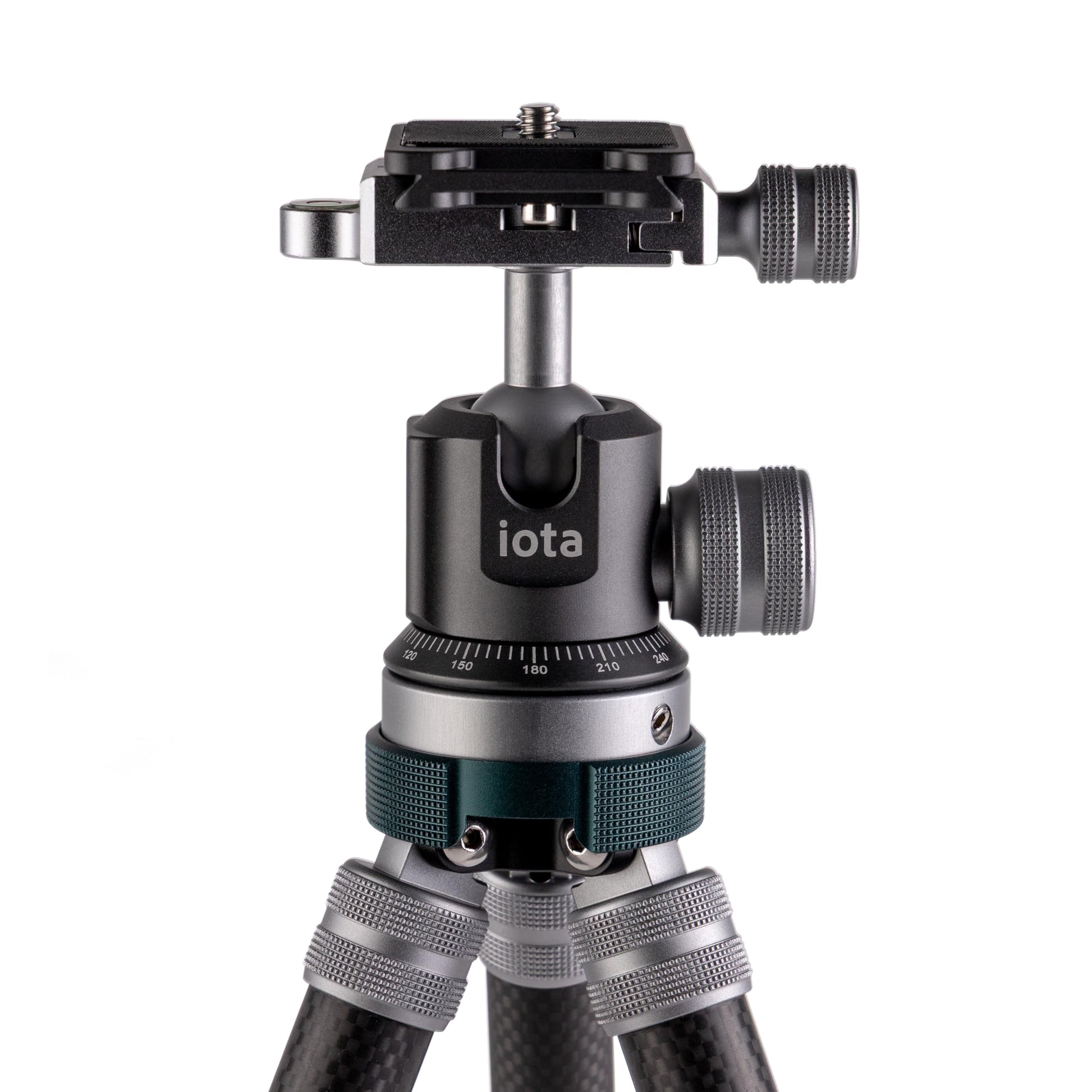 Superior materials and craftsmanship combine for many years of reliability. Each of the iota's leg tubes is constructed of 12x cross-patterned top-of-the-line carbon fiber. Aircraft grade T6106 T6 aluminum alloy is carefully machined to create each leg lock with incredible strength, minimal weight, and a beautiful finish. A blend of aircraft grade T6101 T6 and T6101 aluminum alloys are employed for the construction of the ball head and its controls. The design of each and every part found on the iota has been made with the utmost attention to detail, weight savings, strength, and beauty.